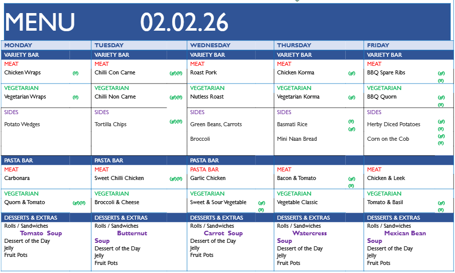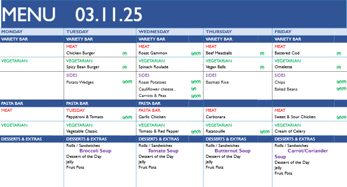 Students eligible for free school meals will have a daily allowance which they can use for one break time snack or a hot drink and lunch (a main meal, a pasta meal or sandwich/roll and crisps). 'Breaktime specials' and cold drinks are excluded and will only be served if additional credit has been added by parents/carers via the ParentPay account (see below).