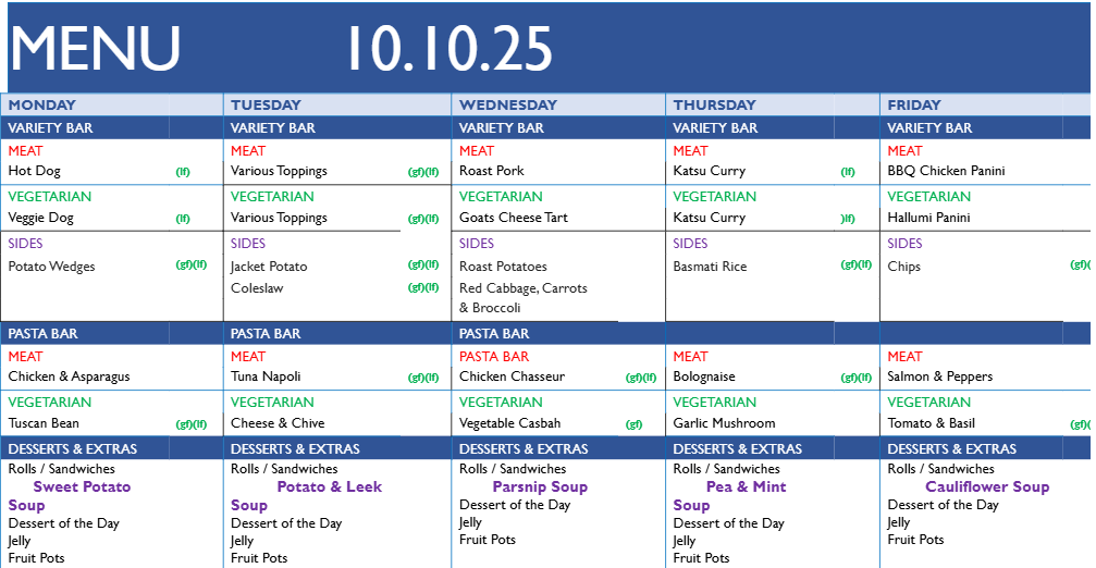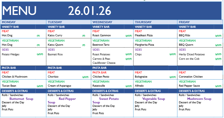 Students eligible for free school meals will have a daily allowance which they can use for one break time snack or a hot drink and lunch (a main meal, a pasta meal or sandwich/roll and crisps). 'Breaktime specials' and cold drinks are excluded and will only be served if additional credit has been added by parents/carers via the ParentPay account (see below).